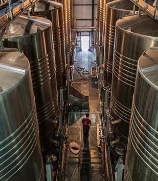 Notre cave est équipée de matériel de pointe comme des pressoirs pneumatiques, un système de protection des vins par gaz inerte ou des cuves inox thermorégulées qui produisent des vins de grande qualité.